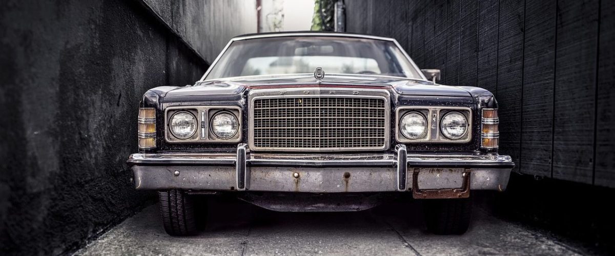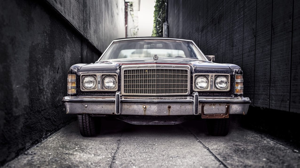in a harpooned 72’ Ford LTD Brougham